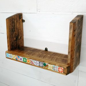 This handcrafted wall shelf blends artisan tilework with sustainable materials, creating a stunning focal point for any room.