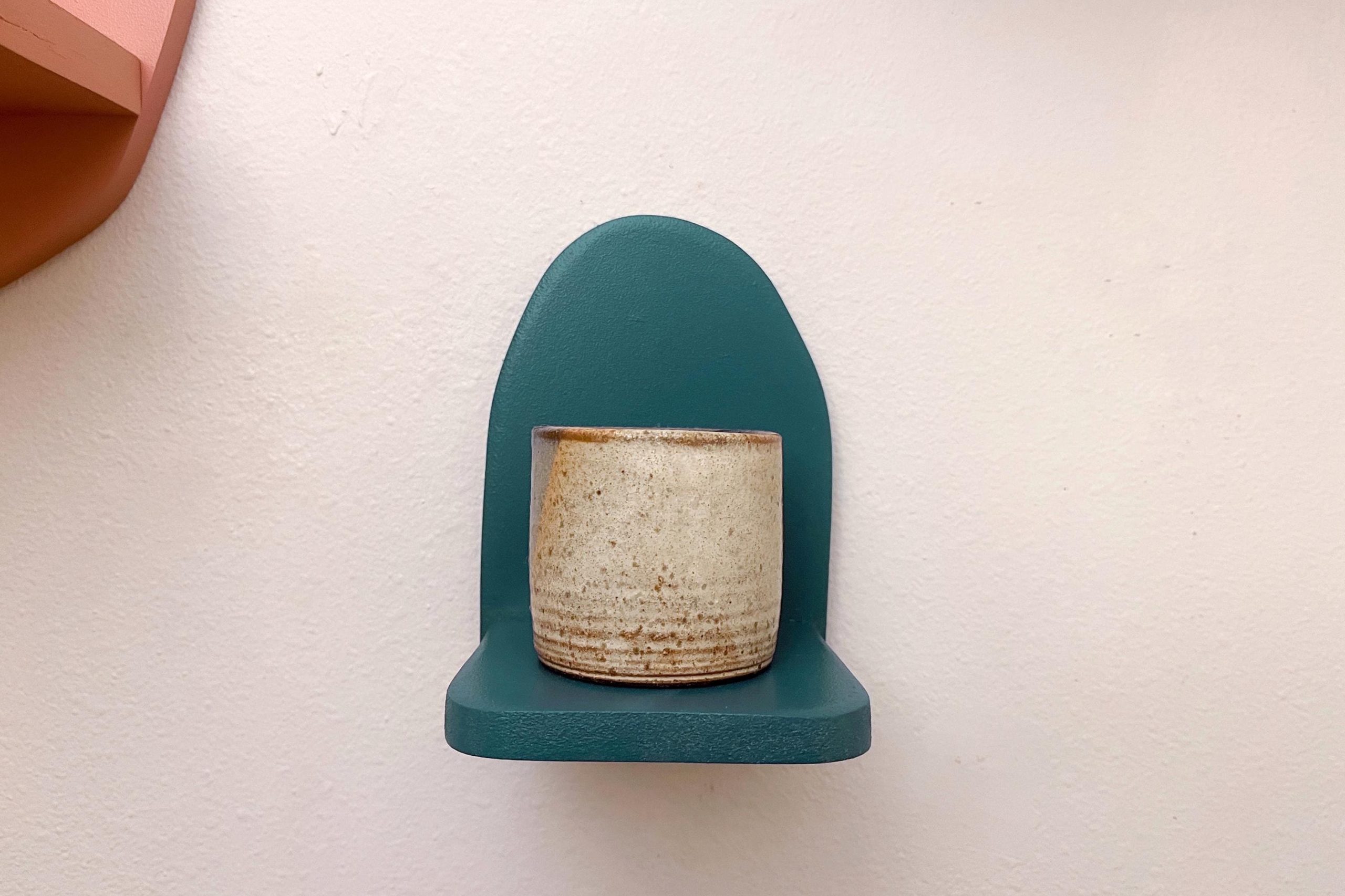 This tiny shelf is the perfect addition to your bedside or couchside. A small shelf made to hold a single coffee mug next to your bed, a remote control next to the couch, your phone, a succulent, or maybe your keys by the front door. Pair with a friend and keep one on each side of the bed for you and your partner. It’s an abstract shape made to be unique and different. Available in all the best colors, carefully curated for you.